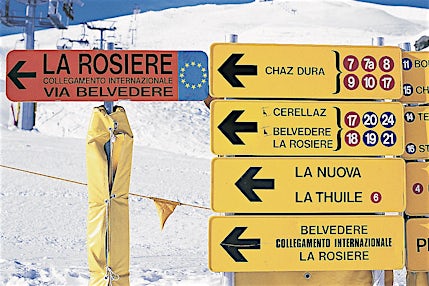 Ota kaikki irti hissilipustasi ja suuntaa Ranskan puolella olevaan hiihtokeskukseen La Rosièreen, johon La Thuilella on hissiyhteys. Espace San Bernardo -nimisellä hiihtoalueella on yhteensä 155 km rinteitä, joista valita. Suosittelemme lähtemään heti aamiaisen jälkeen, jolloin lumi on vielä parhaimmillaan. Kun olet lasketellut aamupäivän Ranskan rinteillä, suuntaa lounaalle L'Ancolie-ravintolaan ja maista Croque Monsieursia. Lounaan jälkeen voit jatkaa matkaa Italian rinteille.