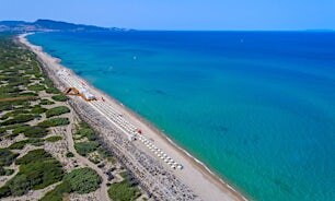 Kilometreittäin vaaleita hiekkarantoja.