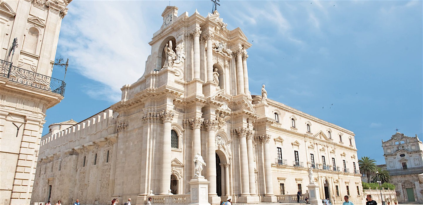 Komea katedraali barokkijulkisivuineen on rakennettu kreikkalaisen, doorilaisten pylväiden koristaman temppelin ympärille. Aivan vieressä sijaitsee Pyhälle Lucialle omistettu kirkko. Hän asui täällä 21 ikävuoteen saakka vuoteen 304 jaa asti, jolloin hänen silmänsä revittiin ja hänet teloitettiin kristinuskon vuoksi. Marttyyrikuolema on tehnyt hänestä sekä sokeiden että Syrakusan kaupungin suojeluspyhimyksen, ja Pyhän Lucian päivää vietetään vuosittain 13. joulukuuta.