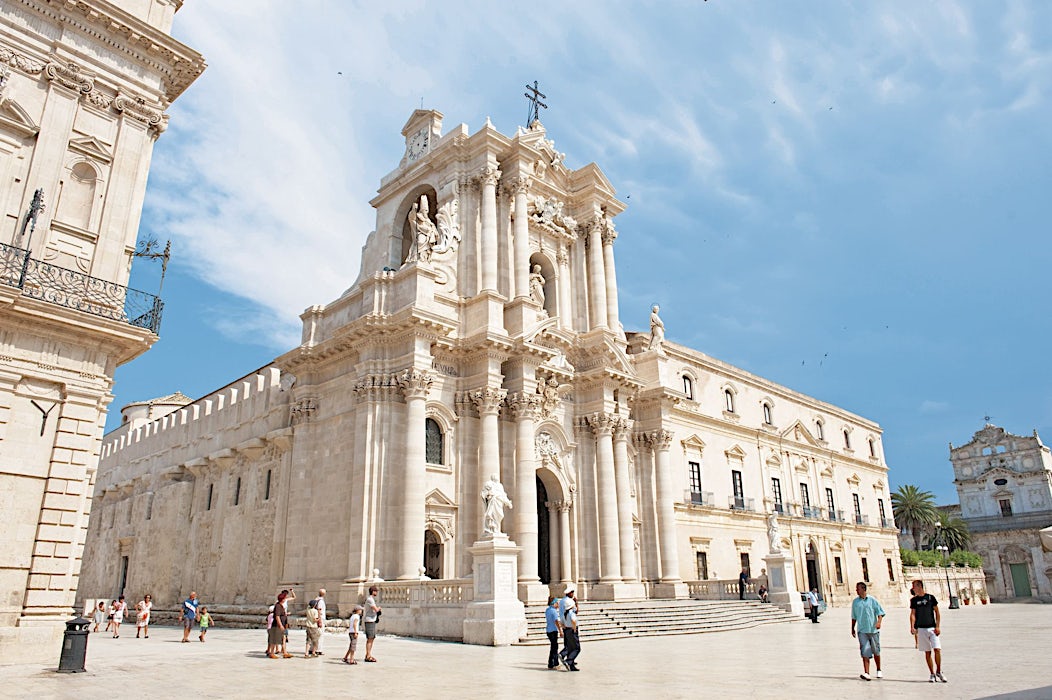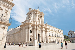 Komea katedraali barokkijulkisivuineen on rakennettu kreikkalaisen, doorilaisten pylväiden koristaman temppelin ympärille. Aivan vieressä sijaitsee Pyhälle Lucialle omistettu kirkko. Hän asui täällä 21 ikävuoteen saakka vuoteen 304 jaa asti, jolloin hänen silmänsä revittiin ja hänet teloitettiin kristinuskon vuoksi. Marttyyrikuolema on tehnyt hänestä sekä sokeiden että Syrakusan kaupungin suojeluspyhimyksen, ja Pyhän Lucian päivää vietetään vuosittain 13. joulukuuta.