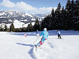 Kitzbühelin 185 kilometriä pitkät rinteet tunnetaan mutkikkaina ja keskivaikeina. Lämmittele loivemmalla Kitzbüheler Hornin vuorella ennen kuin nouset Hahnenkammin hissillä kuuluisalle Streif-kukkulalle. Aloittelijoille laaksossa on ilmaisia aloittelijahissejä, joissa voi opetella perusasiat. Parhaat alueet puuterilumessa laskemiseen löytyvät Bichlalmista.