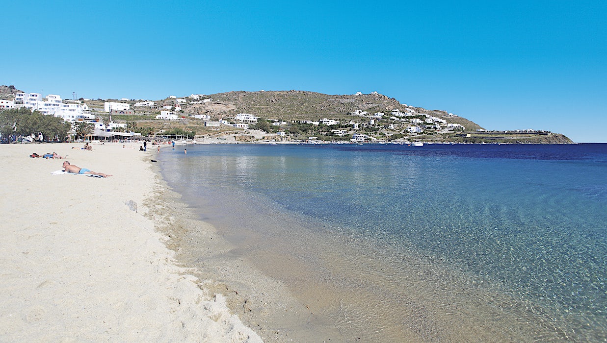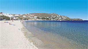 Mykonoksen saarella on useita hienoja rantoja, joilla vesi on kristallinkirkasta.