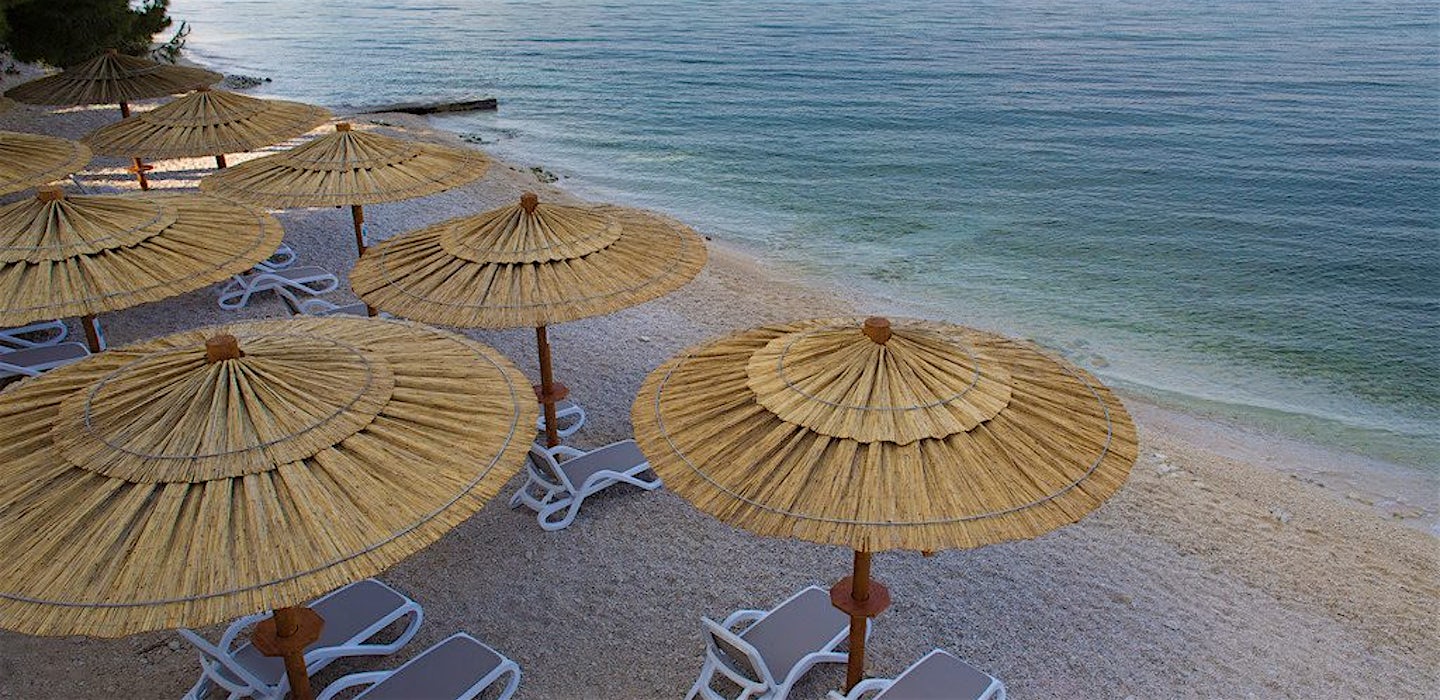 Gradacin laidalla sijaitsee Hotel Saudade, jylhien vuorten ympäröimänä. Hotellilla ei ole uima-allasta, mutta se ei haittaa, kun Adrianmeri on vain muutaman askeleen päässä. Täällä voit rentoutua rannan aurinkotuolissa, joko auringossa tai mukavasti pinjapuiden varjossa.